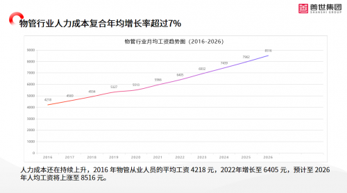 然而,成本管控和投標價格常常是物管企業競爭成敗的決定性因素,面對激烈的競爭環境,他們該如何進一步提升利潤、推動組織增長?王宏志分享道,概括起來講主要有兩條途徑,一是獲取定價權,二是降低成本,但是物業企業很難有定價權。物業費十年如一日,人工費用卻不斷攀升她是他的主宰者,過去7年來,物管行業的員工月薪均值年復合增長率超過7.2%,按這個趨勢,2026年物管企業員工月薪均值將達到8500多元,相當于十年增長1倍。